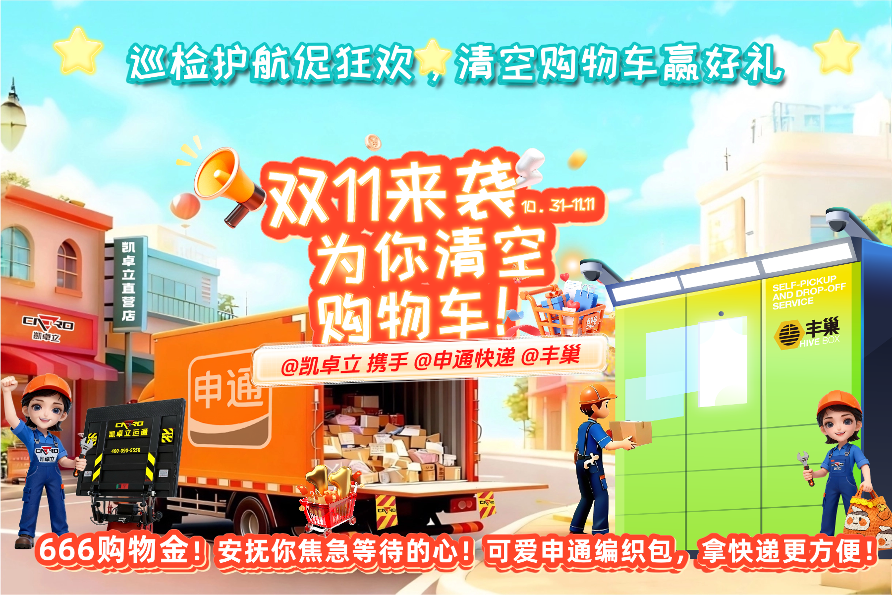 清空購(gòu)物車迎好禮!凱卓立 × 申通 × 豐巢雙十一巡檢護(hù)航,促狂歡。 親愛的 “剁手黨” 們,雙十一的快遞是不是已經(jīng)讓你忍不住刷了八百遍物流信息?別慌!為了讓你順順利利拿到每一個(gè)包裹,凱卓立攜手申通快遞、豐巢,開啟雙十一巡檢護(hù)航促狂歡活動(dòng),從物流運(yùn)輸?shù)侥┒私桓?,全程為你的包?“保駕護(hù)航”!